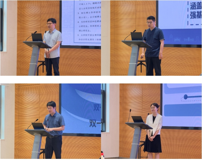 评审会上,10个入围院系的分管领导分别从研究生招生工作的重点亮点、措施成效、思考建议等方面进行了汇报分享。各院系招生工作各有特色、亮点突出:化学系建立多途径直博生培育机制,开展招生培养一体化设计;医学院构建“数据贯通、流程闭环、多维协同”的智慧化招生管理体系,分类选拔与培养优秀医学人才;计算机科学与技术学院依托学科优势拓宽宣传渠道,显著提升生源质量;航空航学院强化学科特色宣传,重点打造产教融合协同育人和国际联合培养项目,不断吸引优质生源;能源工程学院围绕立德树人根本任务,“招生-培养-就业”一体化推进人才培养,收到联培单位好评,显著提升培养供给体系适配性;农业与生物技术学院在招生布局升级、结构优化、质量提高上成效显著,探索构建了招生育人的新生态;历史学院强化为党育人、为国选才的政治站位,全力推进优质生源工程,扎实推进招培就一体化;软件学院围绕特色化示范性软件学院建设,通过强化师资、强化培养、强化选拔等举措,实现优质生源大幅度提升;管理学院坚持“精准选拔、交叉培养、嵌入产业”理念,形成教育-科技-人才一体化招生培养模式,为现代化产业体系发展提供管理研究与实践人才;经济学院围绕招生规模、类别和质量的分析,介绍了如何推动招生选拔精、培养特色尖、就业质量高等众多举措。
